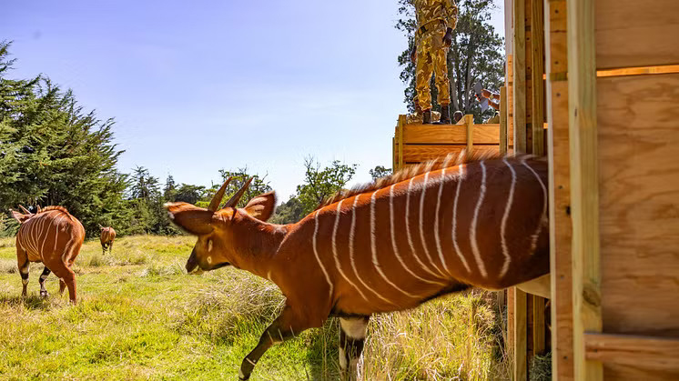 Från USA till Kenya. Sällsynta Östlig Bongo-antiloper återvänder hem. En resa på 13 000 km för att överleva. I februari 2025 transporterade DHL 17 sällsynta antiloper från ett naturvårdscenter i Loxahatchee, Florida, till ett naturreservat på sluttningarna av Mount Kenya, Afrikas näst högsta topp.